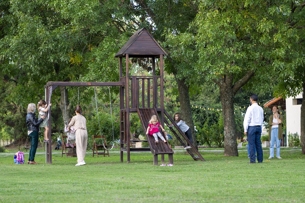 ¡De todo! Andar a caballo o en bici, trepar el ombú, jugar en la plaza, meterse a la pileta y disfrutar del campo.